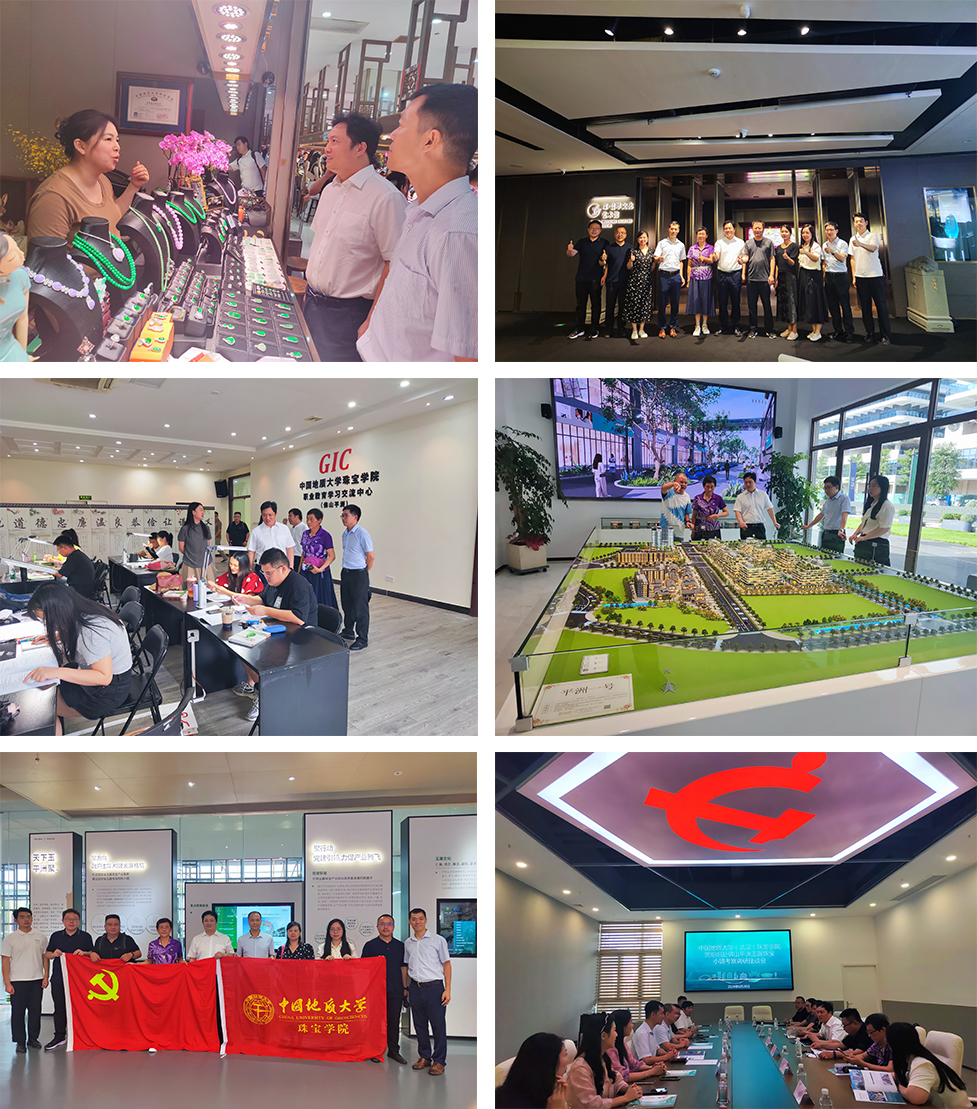 在四会市,beats365官方网站一行走进日丰翡翠毛料市场、四会市工艺美术协会、万兴隆翡翠城、庄家翡翠艺术馆等地开展考察调研,深入了解“党建引领四会玉器产业发展”的示范典型与特色经验。beats365官方网站一行与万德隆产业发展管理中心主任黄振敏,四会市玉石行业电商协会荣誉会长庄庆芳,广东省珠宝玉石标准化技术委员会秘书长王铎,四会中专党委委员彭小文和专业艺术教师罗安琪等参加座谈,双方就选聘校外指导教师、建设实训基地、珠宝检测、科研合作、职业教育等议题开展深入交流。与会人员一致认为,要发挥党建引领力,通过联学联建,深入学习贯彻党的二十大精神和习近平总书记关于教育、科技、人才系列重要讲话精神,深化政产学研用合作,推进创新链产业链资金链人才链深度融合,促进珠宝产业升级和新质生产力发展,实现党建与事业发展“一融双高”。