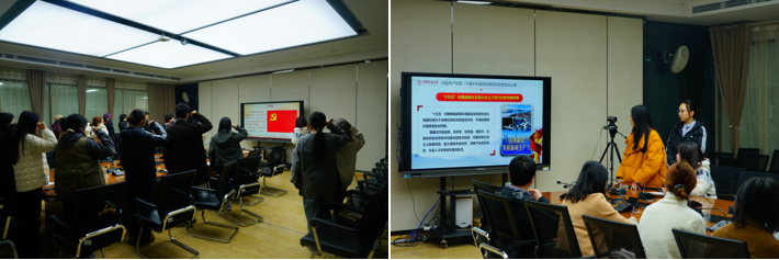 活动伊始,支部副书记刘耀淳介绍活动背景及目标,并带领全体党员庄严重温入党誓词,在铿锵誓言中坚定理想信念、强化使命担当。专题理论学习环节,支部党员吕佳玥、刘艺婷同志领学2025年全国两会精神及“十五五”规划建议相关内容,引导党员深入理解国家战略对珠宝行业发展的指导意义。党员代表围绕科技创新、文化传承与高质量发展等议题展开交流,积极探讨将国家战略需求融入专业学习与个人成长的实践路径。