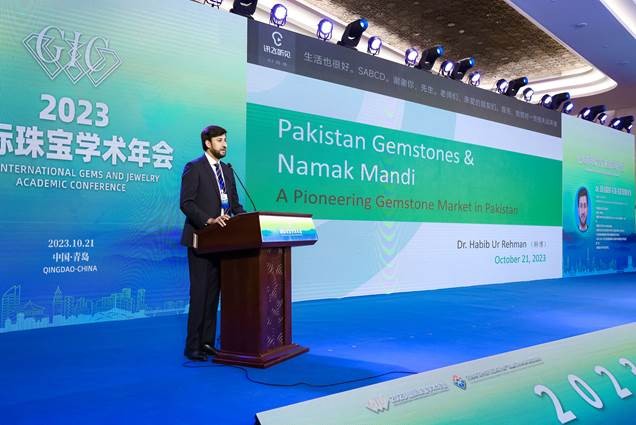 巴基斯坦白沙瓦工程与技术大学珠宝首饰卓越中心博士韩博(中文名)作《巴基斯坦珠宝行业及市场介绍》专题报告。他介绍了巴基斯坦产出的宝玉石种类以及NM(Namak Mandi)宝石市场的发展和交易方式,详细讲解了巴基斯坦的珠宝玉石从开采到销售的具体流程。同时,他表示现阶段巴基斯坦仍存在高精密设备缺乏、珠宝加工工艺水平不高、市场交易标准不完善等问题。他还为与会者讲授了在巴基斯坦购买宝石的技巧,为准备前往巴基斯坦的珠宝采购商提供指导与建议。