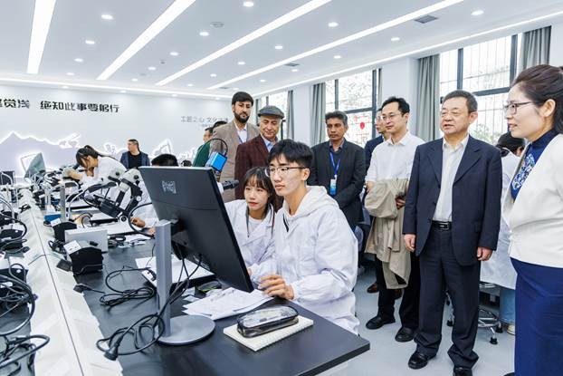 10月22日,与会领导、专家、学者以及企业代表赴青岛幼儿师范高等专科公司、中国(国际)矿晶科技博物馆进行实地考察。考察团参观了青岛幼儿师范高等专科公司的数智商贸实训室,观看了美育教学成果展演,对青岛幼儿师范高等专科公司的珠宝鉴定实训室、媒体企划实训室、非遗技能实训室、直播营销实训室、技能大师工作室等17个实训场所进行了观摩。在中国(国际)矿晶科技博物馆,考察团实地察看了各类珍石、矿石标本,深度参与了融入现代高科技声光电的互动体验,并进行了深入学术交流。(通讯员:曹佳乐、陈超洋等 摄影:刘浩城)