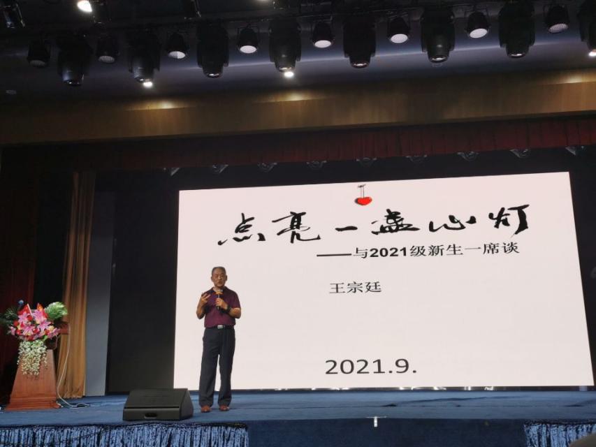 (通讯员 骆彦方)为进一步加强对本科生新生的引导,2021年9月17日上午beats365官方网站特邀退休教师王宗廷教授为2021级本科新生作题为《点亮一盏心灯——与2021级新生一席谈》的主题讲座。王宗廷老师结合富有哲理的小故事深入浅出地为新生讲解人生道理,层层推进,引人入胜。