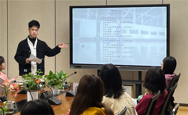 党委副书记陈汉英、辅导员汤凡渺、兼职辅导员赵安迪、谢雅亿及考研学子参加了此次会议,同时邀请两位考研成绩优异的研一学姐郭忆文和研三学长陈志为同学分享学习经验。