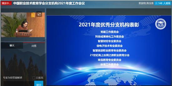会上, 8个分支机构被评为学会“2021年度优秀分支机构”,珠宝教育专业委员会荣列其中,这是学会对珠宝教育专业委员会全年工作的充分肯定,也是对未来珠宝教育专业委员会工作的鞭策和对珠宝职业教育发展的期望。