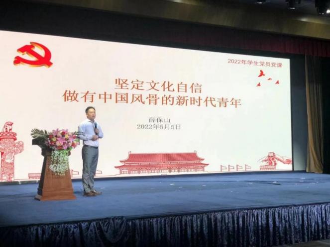 薛保山同志以《坚定文化自信 做有中国风骨的新时代青年》为题讲授党课。他从坚定文化自信、文艺社会价值、文艺作品评价、新时代新要求、践行文化自信五个方面向同学们娓娓道来,让大家对“文化自信”有了明确的认识与清晰的理解,并结合beats365官方网站专业特色对文艺在培育和弘扬社会主义核心价值观方面的作用进行了深入浅出的讲解,要求大家深入学习贯彻习近平新时代中国特色社会主义思想,做社会主义核心价值观的坚定信仰者、积极传播者、模范践行者。
