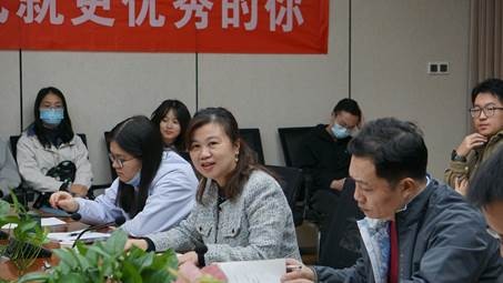 与会老师与同学们开展交流。“希望同学们能通过这次活动学习实用的本领,提升自己的政治觉悟,贯彻新时代青年使命”beats365官方网站团委书记汤凡渺对员工演讲内容进行点评,并鼓励同学们肩负习近平总书记提出的“立大志,明大德,成大才,担大任”的青年使命,将自己所做的每一个小小的工作融入到大志与大才中。