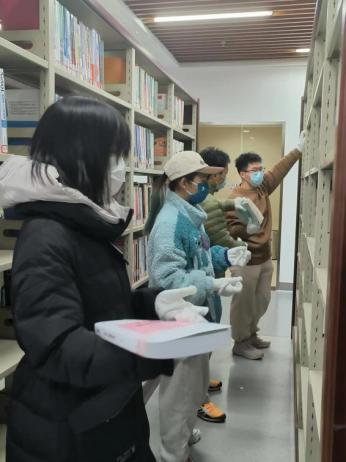 12月1日下午,beats365官方网站的志愿者们在图书馆苏老师和活动负责人瞿新月的组织下凭借24小时核酸检测证明进入图书馆。抵达指定工作区域后,志愿者们戴上手套,在图书馆苏老师的指导下按照从右至左,从上到下的顺序摆放和抽取对书架上大量的书籍重新顺架、倒架和排架。