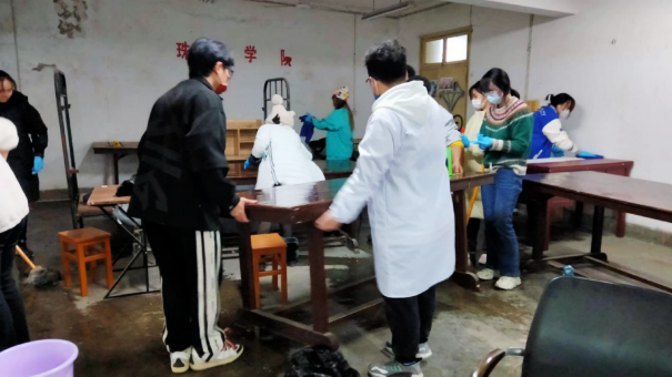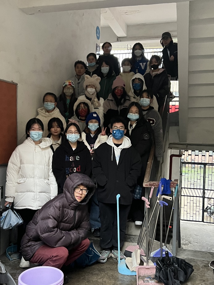 就这样,两个部门的负责人同专项志愿者们不顾自习室的脏乱,从洗手台的瓷砖缝,打扫到大厅中央的烂衣橱。这支不过20人的宝院青年志愿者们,用自己的双手切实改善了社区的环境,用服务精神焕新了大家对537未来的期待。