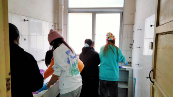 “真不得了。这么多员工团结一心搞卫生,还有这么多女娃娃,上次见都不知道什么时候嘞。”看着“宝院”志愿者们勤劳的身影,宿管王阿姨脸上流露出既惊喜又欣慰的笑容。