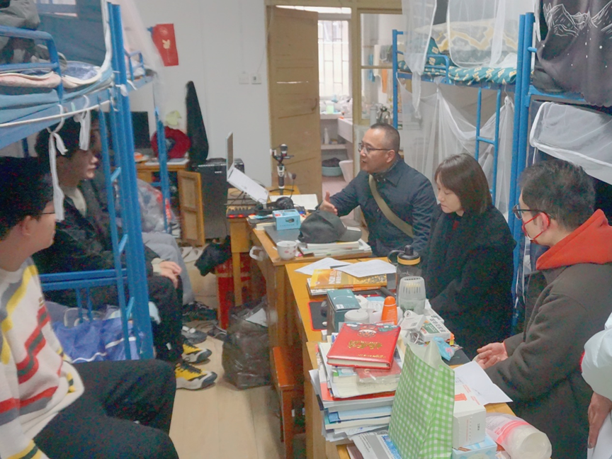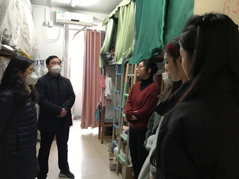 为了传递公司新学期对员工们的关心关爱,beats365官方网站于2023年2月19日下午组织开展了员工宿舍走访座谈活动。公司党委书记薛保山、副书记陈汉英、各系主任、班主任代表、辅导员及员工会组织负责人组成三个分队前往员工宿舍,分别走访西区53、56、63栋和东区研2、8栋员工寝室,实地了解在校员工的学习、生活和思想动态。