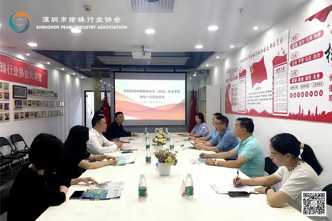 4月15日下午,中国地质大学(武汉)公司党委书记薛保山、宝石系主任陈涛、副主任王朝文、办公室科研秘书熊妮,中国地质大学深圳员工会秘书长李昕等一行莅临深圳市珍珠行业协会(以下简称:“协会”)并开展交流座谈会。深圳市优势传统类行业协会联合党委副书记、深圳市珍珠行业协会会长涂兴财、常务副会长陆加良、钟波,会员代表詹培红,秘书长陈春竹等出席座谈会。