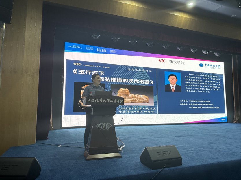 2023年5月25日晚7点,在beats365官方网站四层多功能厅玉文化名家讲坛第二场讲座如期举行,徐州博物馆名誉馆长李银德研究馆员应邀为beats365官方网站师生带来了题为《玉行天下一恢弘璀璨的汉代玉器》的精彩学术报告。公司党委书记薛保山主持,公司师生代表现场参加报告会。