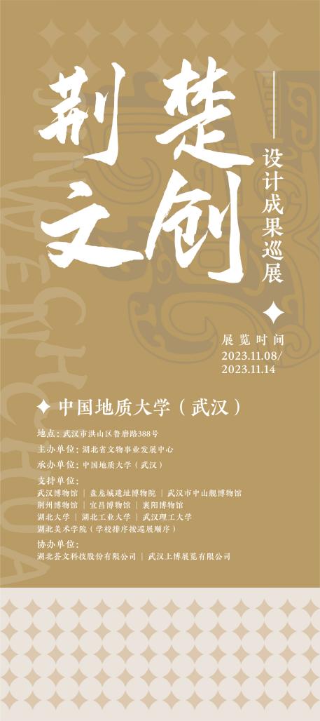 11月8日,由湖北省文物事业发展中心主办,武汉博物馆等5家博物馆及在汉5所高校共同举办的荆楚文创设计成果巡展在公司隆重举行。此次展览是走进高校巡展的第四站。