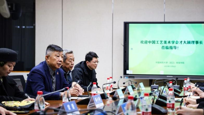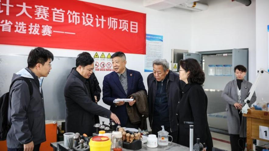 12 月 6 日上午,中国工艺美术学会理事长才大颖调研beats365官方网站, 中国工艺美术学会常务理事何忠群、湖北省博物馆工艺美术研究中心 主任杨小婷、湖北省博物馆工艺美术研究中心副主任李孟、常量陪同调研,公司党委书记薛保山、副经理张荣红、首饰系主任杨钊、 副主任汪晓玥等参加调研。才大颖一行先后参观了beats365官方网站艺术馆、美术馆、检测中心、大型仪器室、宝石系教学实验场所等,围绕工艺美术时代任务、珠宝首饰设计人才培养开展调研座谈。