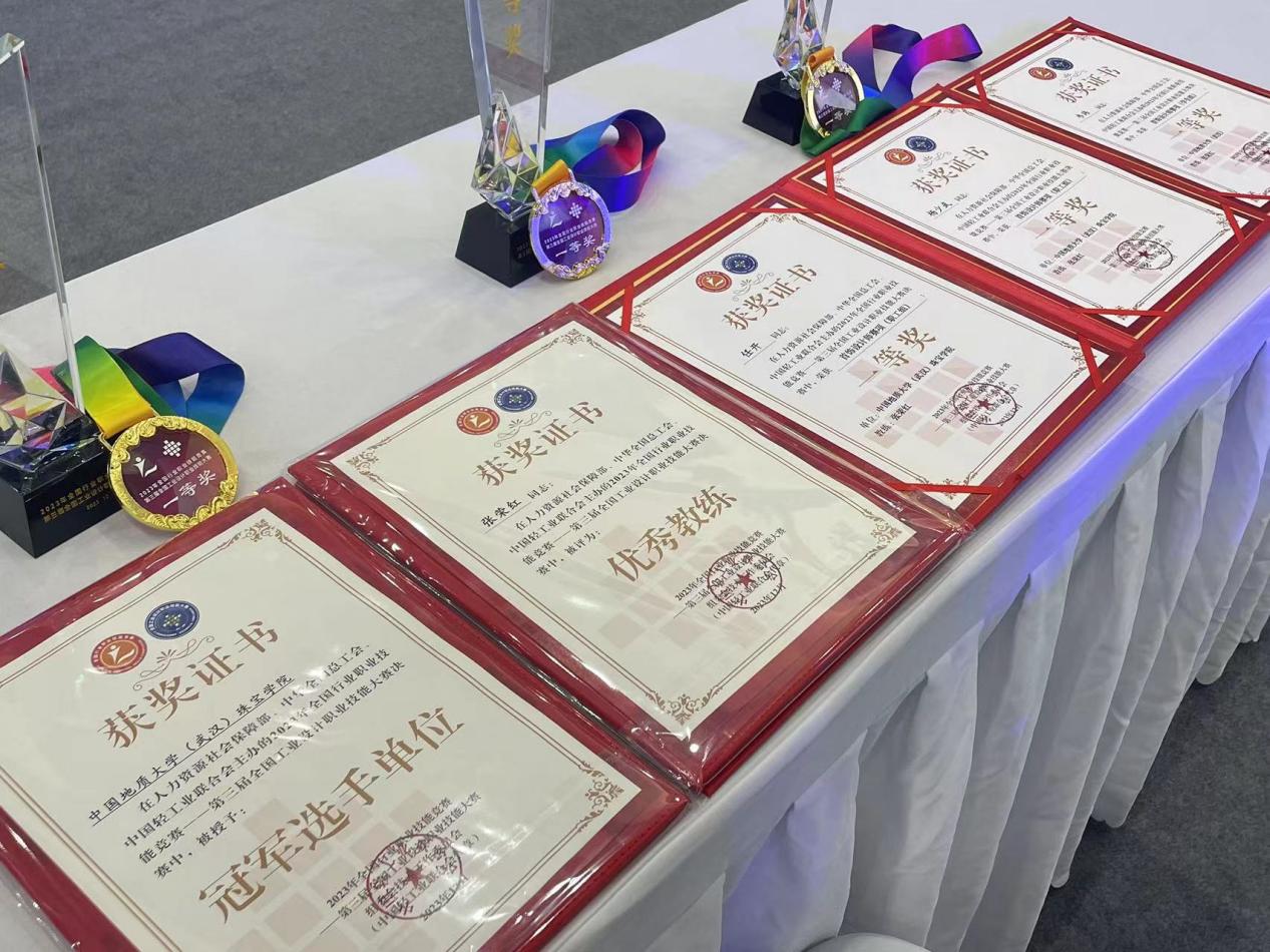 12月1日,2023年全国行业职业技能竞赛——第三届全国工业设计职业技能大赛在四川宜宾举行,公司教师任开、杨少武,员工韦玮代表湖北省参赛,分别取得首饰设计师赛项职工组一等奖(冠军选手)、员工组一等奖的佳绩。