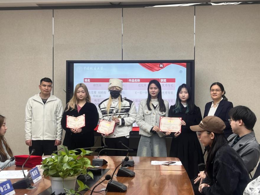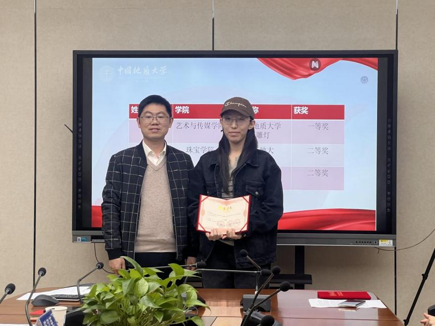张琰副总经理宣读表彰决定。本次比赛经过作品征集,层层筛选,共评出一等奖1名,二等奖2名,三等奖4名,优秀奖4名。张琰鼓励同学们积极参加文创设计大赛,希望有更多员工的文创作品能够展现地大文化风采。