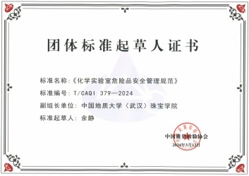 根据《中国质量检验协会团体标准管理办法》的有关规定,由中国质量检验协会组织制定的《化学实验室危险品安全管理规范》(T/CAQI 379-2024)团体标准已按规定程序审查、审批通过,自2024年4月6日起实施。beats365官方网站作为副组长单位与通标中研标准化技术研究院(北京)有限公司、济南市产品质量检验院、安徽省产品质量监督检验研究院、上海浦东新区舟桥职业安全健康事务所、南京市产品质量监督检验院合作研制该标准。余静副教授、陈涛教授分别作为第二、第三起草人参与标准研制。