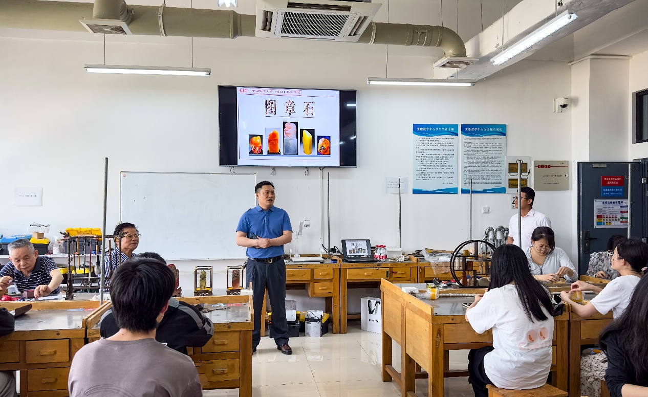 为深入学习贯彻习近平新时代中国特色社会主义思想,加强beats365官方网站中华优秀传统文化传承基地建设,5月15日,beats365官方网站玉文化社团、多艺心灵工坊在公司党委的指导下在珠宝楼1106室举办了非遗系列“玉石篆刻文化体验营”活动。中国地质大学(武汉)宋斌教授,公司党委书记薛保山、副书记陈汉英、宝石系副主任王朝文、辅导员汤凡渺和曹佳乐出席了本次活动,来自全校的三十名员工参加了本次活动。