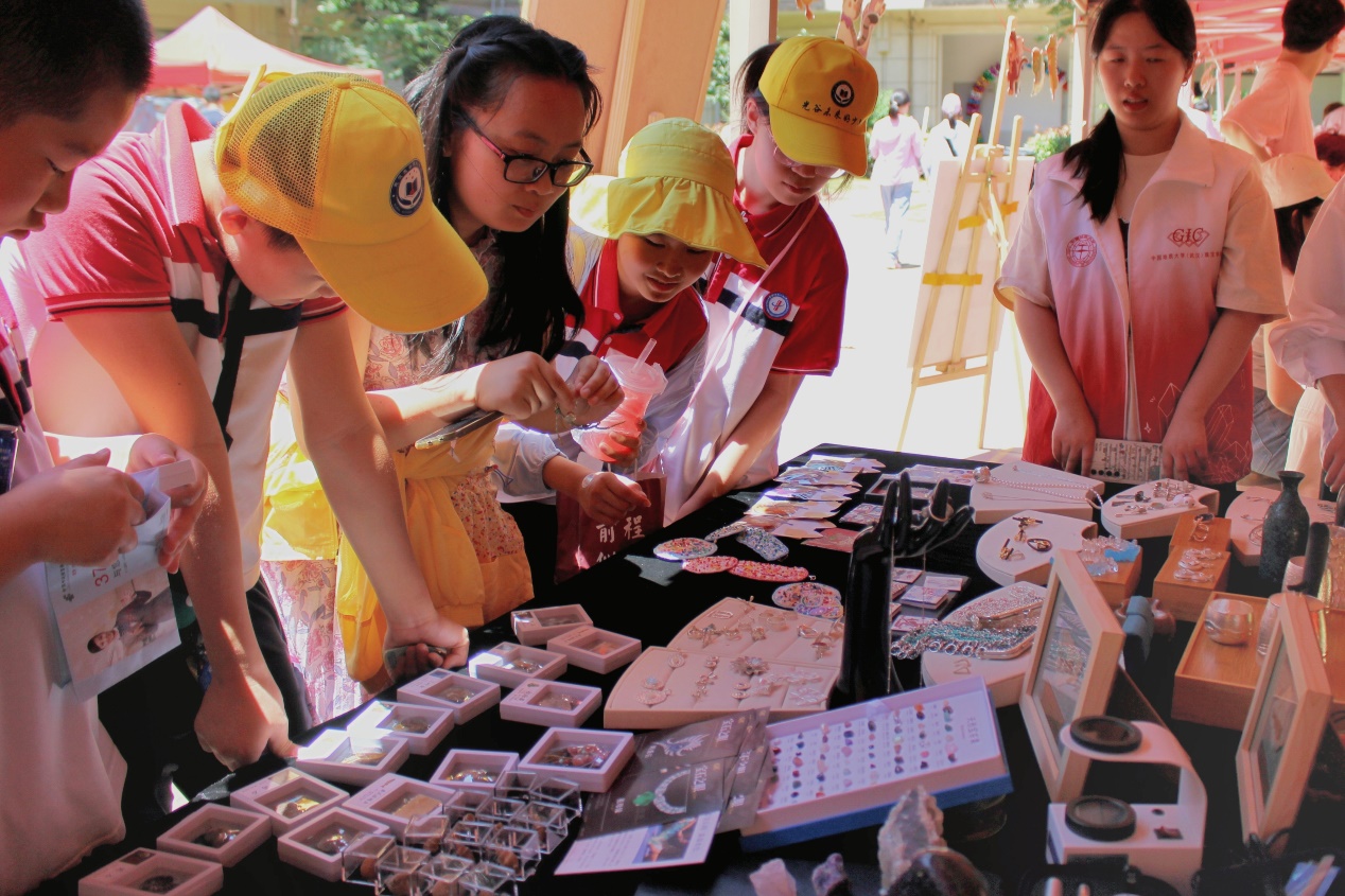 当天,武汉大学、华中科技大学、中南财经政法大学等多所高校参加了活动。在这个“未来职业科技小镇”,小朋友们化身小小警察、化学家、物理学家、裁缝,体验不同的职业,播种梦想的种子。在地大beats365官方网站展位上,以珠宝科普、珠宝鉴定以及精美的珠宝设计作品成为焦点。优秀的设计作品、珠宝相关文创产品、各色珠串和矿标琳琅满目,吸引许多员工与老师前来观赏与选购。