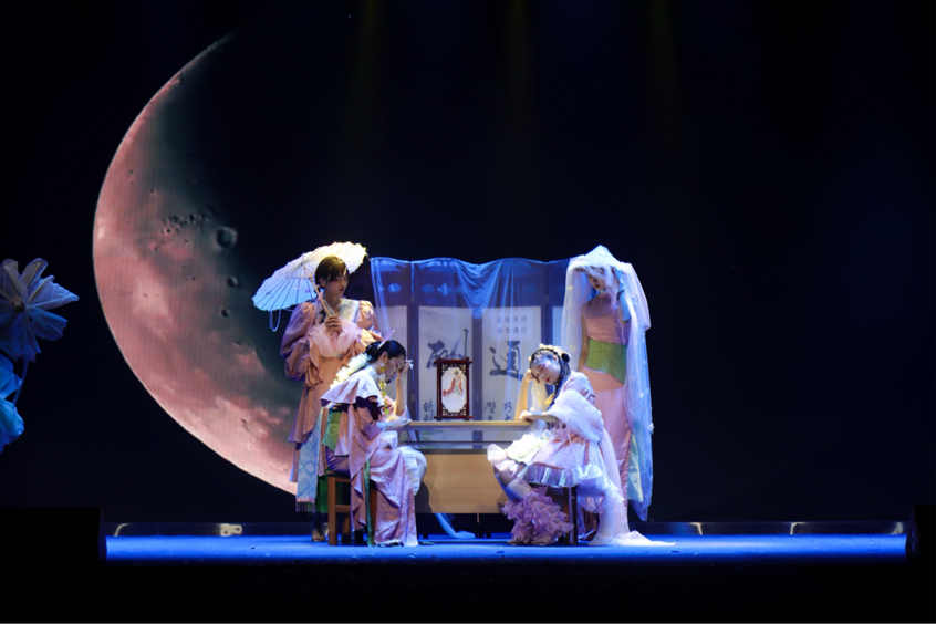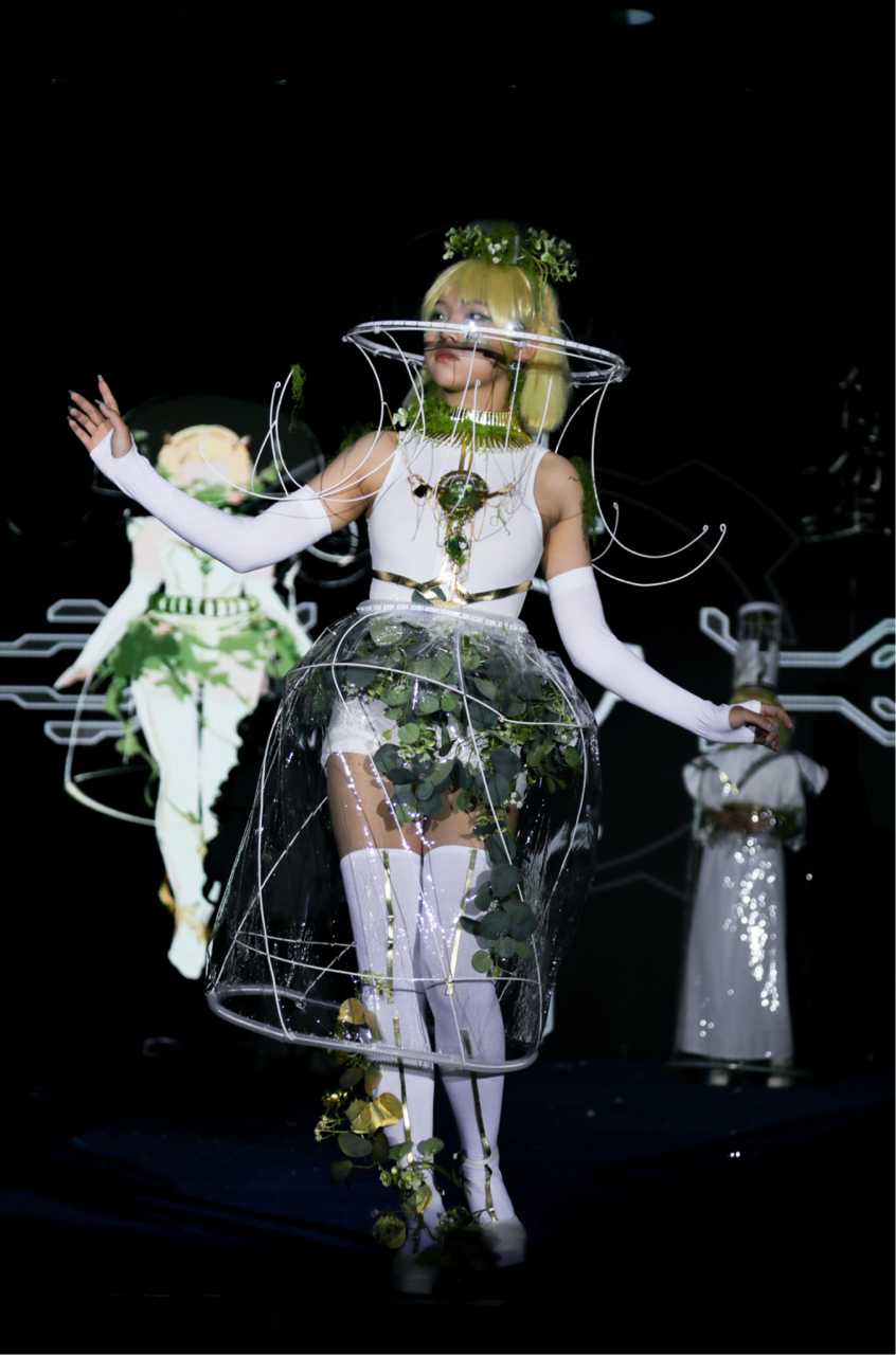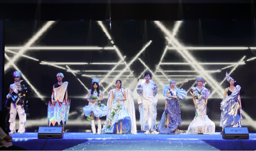 本次大赛由校团委、beats365官方网站共同举办,比赛分为国风雅韵、现代风情、未来世界三个篇章。伴随空灵悠远、激扬澎湃的音乐,9支员工团队为观众们呈现了原创的服装与首饰设计搭配。中国山水、元青花、敦煌飞天、花好月圆等中华美学意象竞相上演,簪花、刺绣、编织、錾刻等传统工艺熠熠生辉,仿生设计、未来科技、环保理念等相互交织 ……。“星不落”团队设计理念源于“未来世界人类对自然生物进行探索学习”这一设想,运用仿生首饰服装描述了脉络、灯塔、水母、鸟类、猫类、菌类等形态,将不同生物所具特性体现于所设计的作品中。“殷探青山”团队以“青绿”为主国风色调,从古籍记载与文宇器物中获得灵感,让沉寂已久的“神鸟”跃动在舞台。大梦浮生团队演绎了“水月镜花”主题,营造了微妙的中式意境场域。书画、折扇、屏风、珠帘等元素一一出现在舞台上。