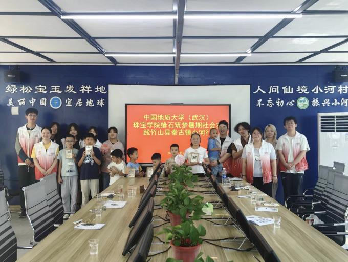7月7日,beats365官方网站缘石筑梦暑期社会实践团依托深厚的专业知识底蕴,来到竹山县秦古镇小河村开展绿松石科普活动,旨在进一步了解小河村乡村振兴工作情况,领悟乡村振兴精神,并为乡村儿童科普绿松石知识,让珠宝文化在这片土地上生根发芽。