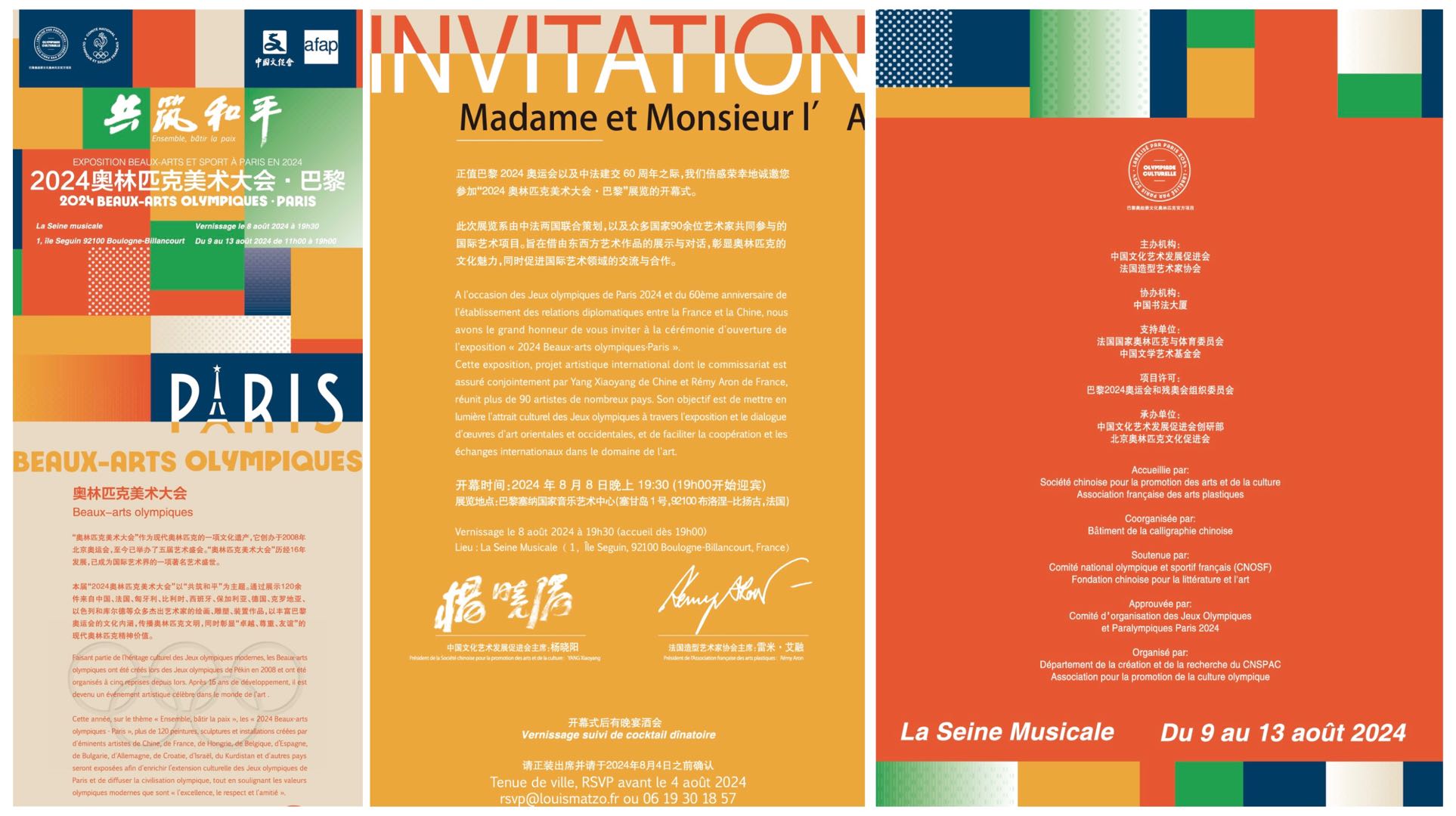 据悉,本次2024巴黎奥林匹克美术大会是国际奥委会邀请和巴黎奥组委授权,在法国奥委会和中国文学艺术基金会的大力支持下,由中国文化艺术发展促进会和法国造型艺术家协会共同主办,中国书法大厦协办,是一次体现中华文明与奥林匹克精神的精彩碰撞的重大国际文化活动,在国际文化交流史上具有深远的影响。