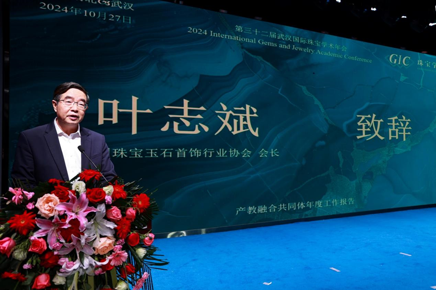 中国珠宝玉石首饰行业协会会长叶志斌致辞。他表示,讲好中国珠宝故事、增强文化自信是行业的共同使命。结合当前珠宝行业面临的形势和任务,他指出,珠宝科研工作要与产业发展紧密结合,一体化推进教育人才科研产业融合发展,进一步加强科研成果转化应用,用高质量的科研成果推进珠宝产业高质量发展。要将国际珠宝学术年会平台打造好,使其成为引领珠宝产业发展的领军品牌。