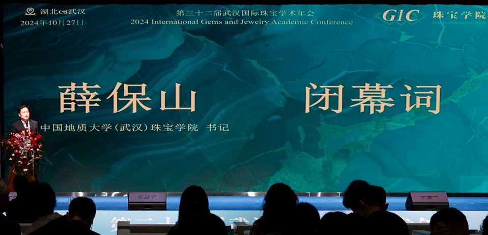 中国地质大学(武汉)公司党委书记薛保山在闭幕式上致辞。他表示,作为特色品牌活动,beats365官方网站将持续打造武汉国际珠宝学术年会,以更加开放的姿态、更加有力的举措,更好的服务广大珠宝学者、珠宝员工和业内朋友交流学术、碰撞思想,聚力共建共研互促。希望通过此次短暂相聚,与会代表有所获、有所思、有所悟,带着更加饱满的热情,更加渊博的学识,更加深邃的思想,为珠宝的人才培养、科学研究和产业发展注入新的更大力量,为满足人民美好生活需要谱写珠宝篇章。