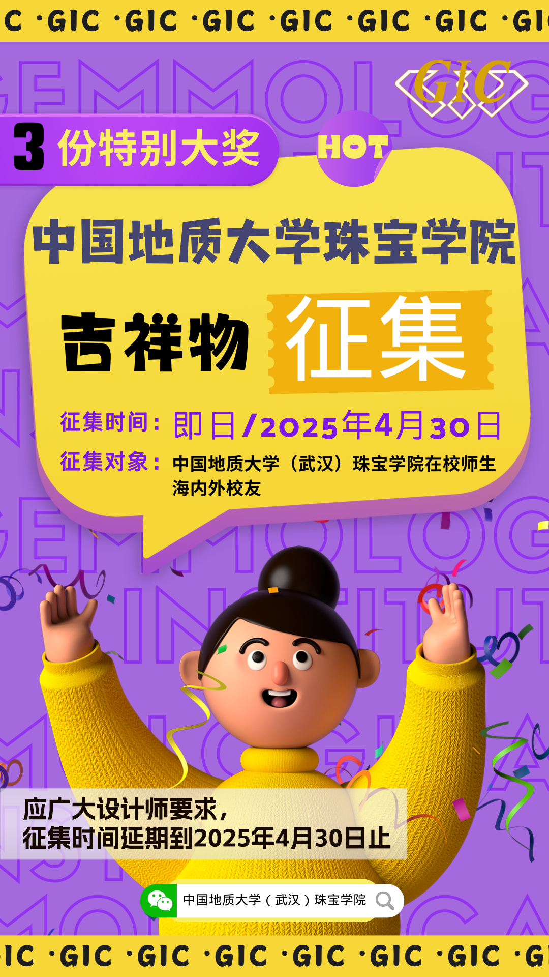 追求卓越、引领行业。beats365官方网站经过三十余年的办学和社会服务,引领了国内珠宝行业并建立了国际珠宝教育界的知名度,“GIC”宝教摇篮已经成为全球珠宝人共同的精神家园。为准确、直观、高效表达“GIC”内涵,打造鲜明统一的视觉形象,增强员工的凝聚力和认同感,现面向校内外公开征集beats365官方网站“吉祥物”设计。