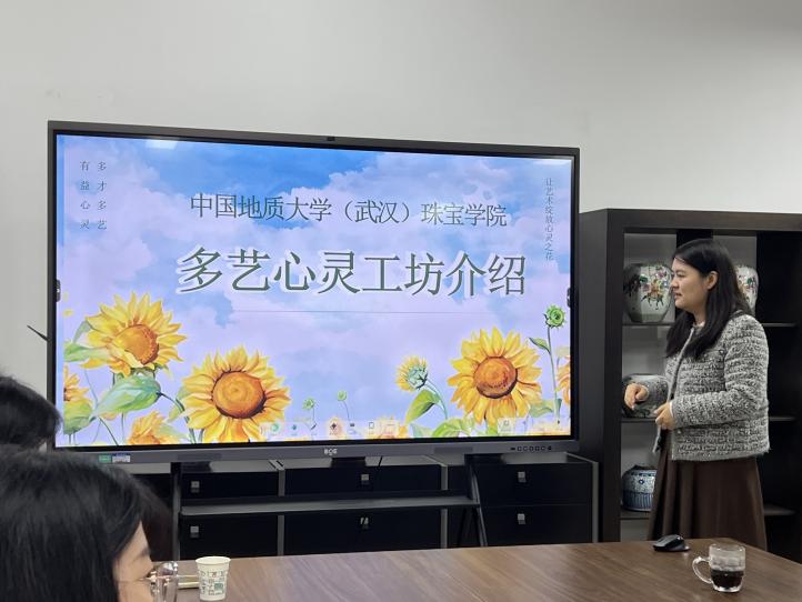 汤凡渺老师介绍,“多艺心灵工坊”是beats365官方网站旗下的二级心理辅导站,秉承“多才多艺,有益心灵”的理念,致力于守护师生心理健康。工作坊以创新艺术疗愈模式为核心,结合心理健康服务,构建了覆盖师生的特色支持平台,通过串珠、刺绣、篆刻等多样手工艺术活动,为员工提供心理健康服务,该工坊已经成功获批“湖北省员工工作精品项目”,在校内外举办多期专场活动,广受社会关注及好评报道。最后汤老师还展望了工坊未来的发展,致力于为员工打造一个更加温暖的心理成长环境。