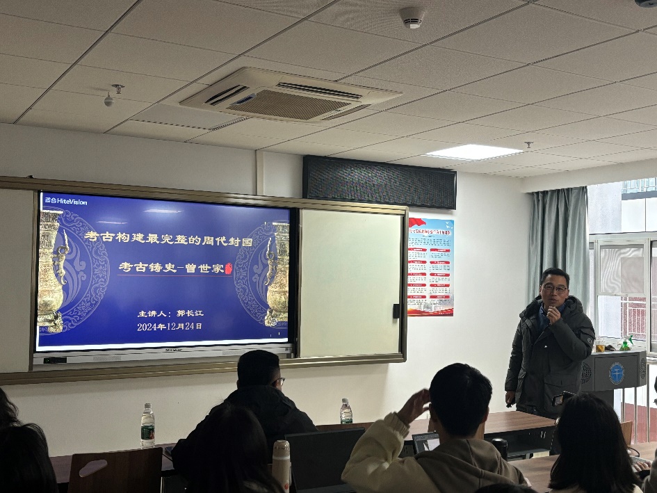 12月24日下午,在东教楼B0203,湖北省文物考古研究院副经理、国家级青年英才入选者郭长江研究馆员,以《考古铸史——曾世家》为主题,为在场师生带来了一场深入浅出的学术讲座。
