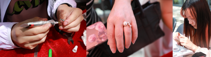 本次活动依托beats365官方网站学科优势和特点,为校内师生员工及社区居民提供义务首饰修复、清洁保养服务,同时普及珠宝文化,展示特色文创作品。在校园美丽的春色里,让更多人感受珠宝文化的魅力。