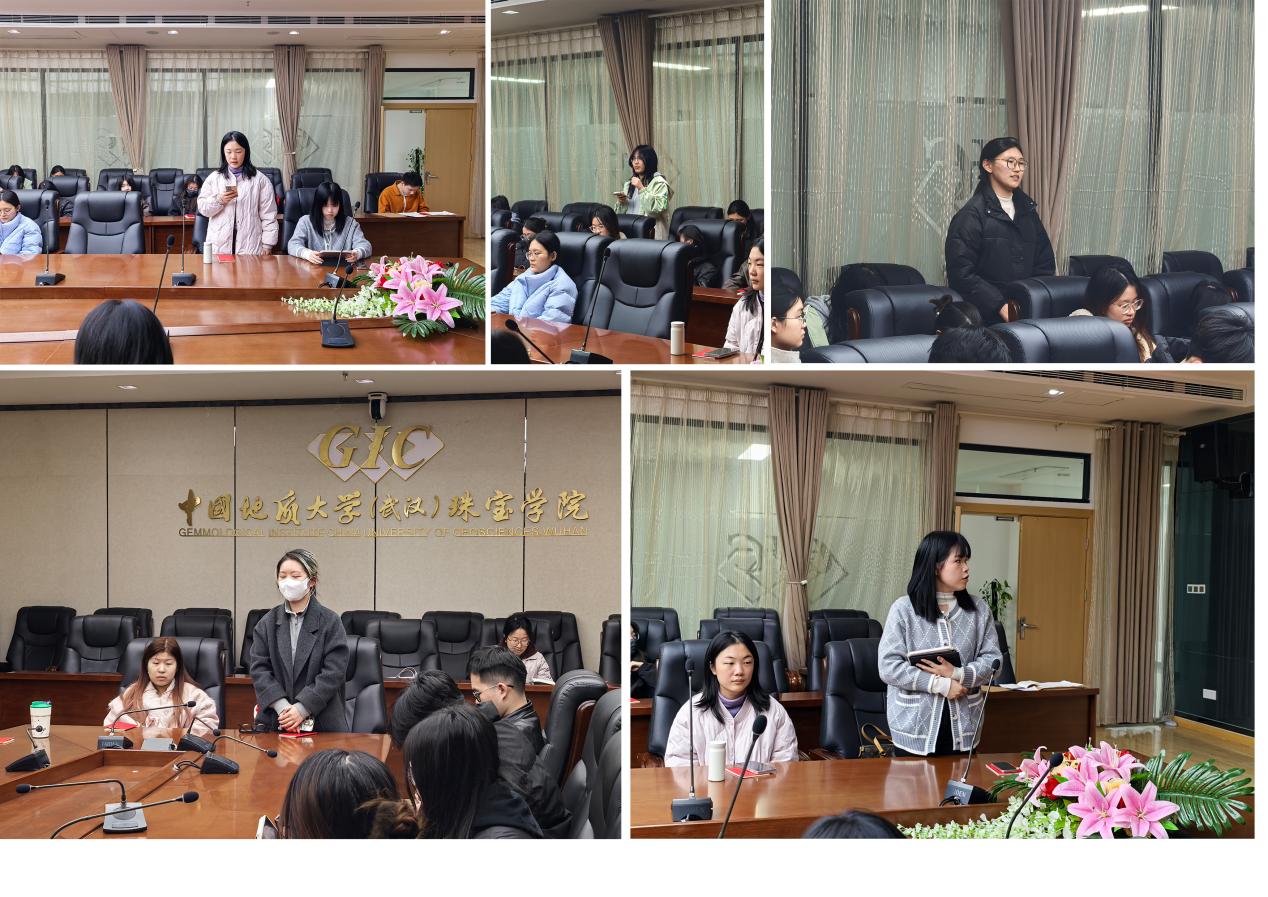 随后,王曼力、李馨、胡晨瑶、周采飞、胡艺璇等五位团支部代表也分享了此次学习的心得体会,展现了青年学子的责任与担当。她们表示,作为新时代的青年员工,肩负着传承党的优良传统、弘扬时代新风的重任。李馨同学作为珠宝设计专业的一员,表示要努力提升创新与实践能力,用匠心打造出兼具文化价值与市场竞争力的珠宝,为推动珠宝行业的高质量发展贡献力量。