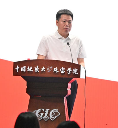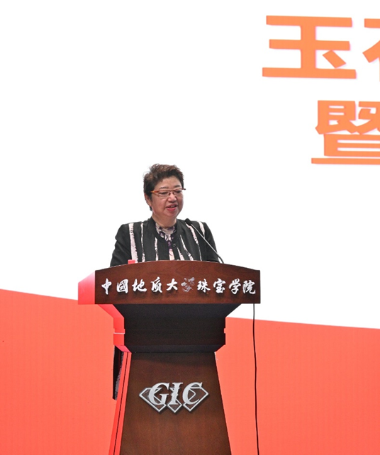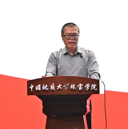 胡守庚副董事长代表公司致辞。他指出,本次会议是"标准+文化"的双主题呈现,一方面,通过标准宣贯推动行业从"经验判断"向"科学评价"转型,另一方面,借助珍贵印石的展示,让公众直观感受"一石一世界"的艺术境界。他表示,公司将继续加大对珠宝学科的支持力度,加强与行业企业、科研机构、政府的深度合作,推动珠宝产业创新发展,为行业培养更多高素质专业人才,同时也期待能为提升城市文化软实力、区域经济社会发展注入新的发展动能。