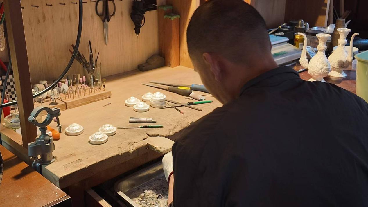王松师傅教学时,手持刻刀在银片上细细雕琢,指尖起落间,繁复的花纹便有了雏形。他一边演示一边叮嘱:“每一刀都要贴合纹路走向,才能让图案活起来。” 我们拿起刻刀尝试,总因手法生涩让花纹失了灵气,更觉这门技艺的精妙。