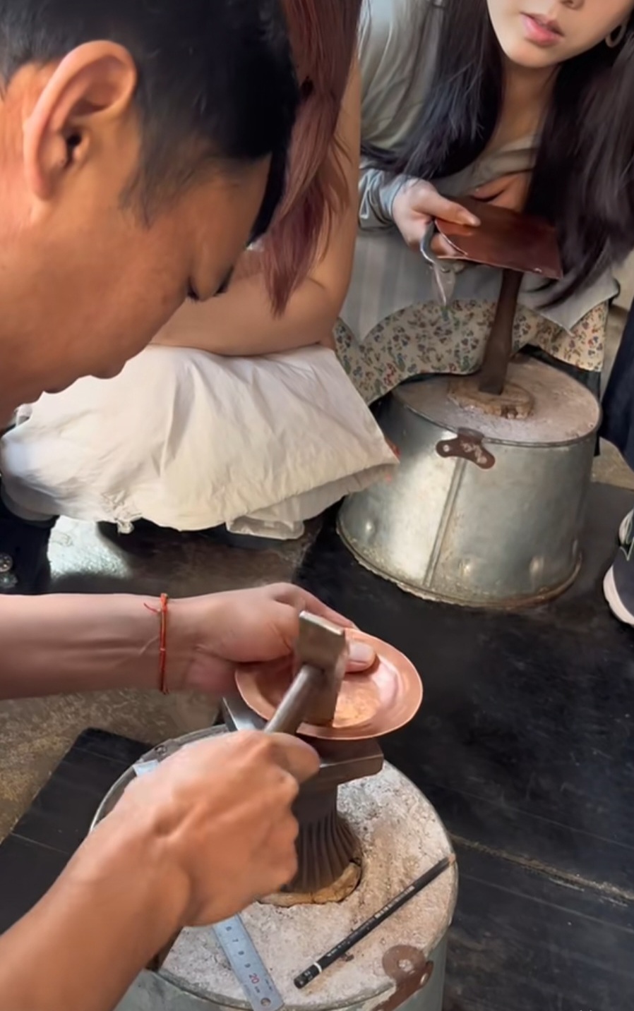 寸发标老师的课堂总围着最多人。教我们锻打时,他先让大家触摸不同纯度的银料,示意 99 银软如棉,925 银刚似骨,选对材料是基础。