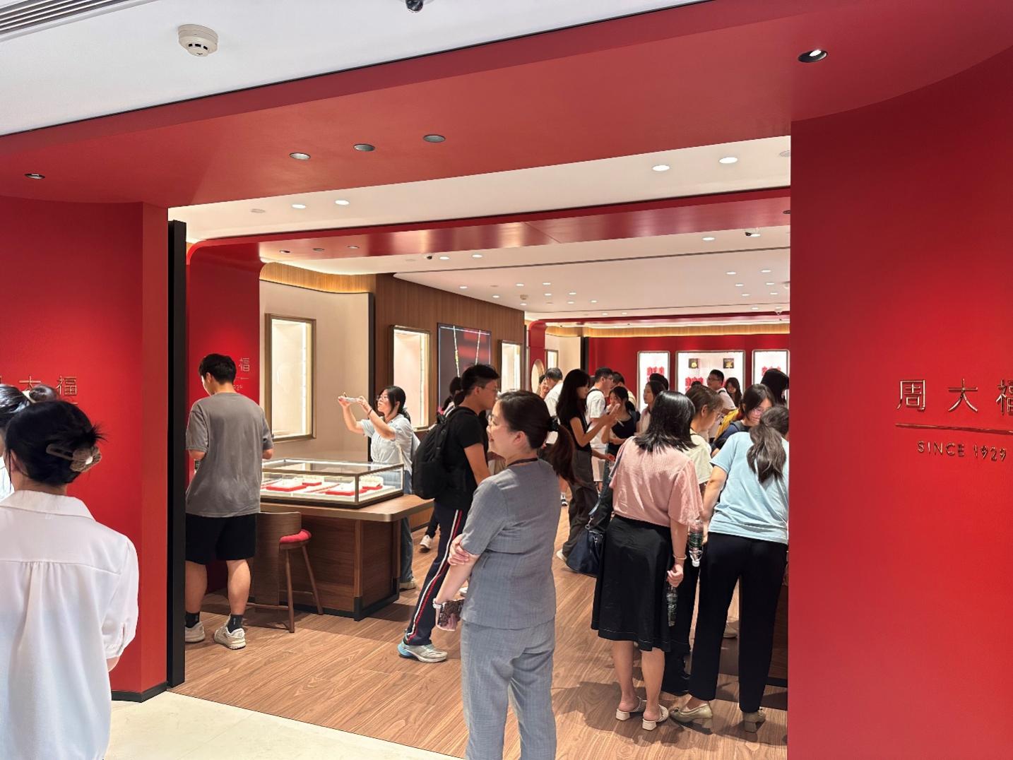 师生一行了解了“园区规划与产业布局”。周大福讲解员重点介绍了公司生产制造区、营销展示区、培训研发区、员工生活区等多个区块的协同运营。随后参观了公司的营销展厅。这里分为黄金饰品、钻石珠宝、翡翠玉石、彩宝首饰四大展区,陈列着周大福大量的当季热销款、经典款及定制款产品,新生们化身“小小经销商”,在惊叹于产品精美的同时,对珠宝产品的价格有了初步的了解。通过观察选货台的产品陈列、听讲解销售数据背后的逻辑,新生们深刻认识到:珠宝产品的设计与生产,始终要以市场需求为导向。商品选货台是连接企业与客户的关键节点,不仅是“卖货”的地方,更是收集市场需求、调整产品策略的“窗口”,珠宝销售不只是“推销产品”,其核心是“匹配需求”,既要考虑产品的设计与品质,更要结合客户的使用场景、情感诉求与预算,这也是珠宝专业同学未来需要掌握的核心能力之一。