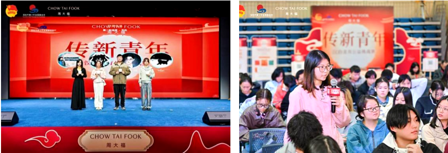 周大福高管分享了品牌发展历程与行业趋势,展现了企业在推动珠宝行业发展中的引领作用;非遗传承者则与员工们深度对话,探讨传统文化在现代设计中的应用与创新路径。这些环节为学子们提供了了解行业动态的机会,也激发了他们对文化根脉的守护意识与创新能力。