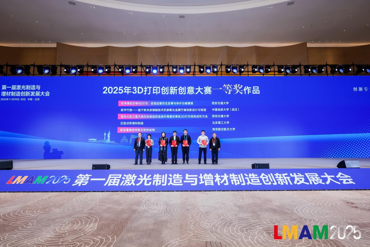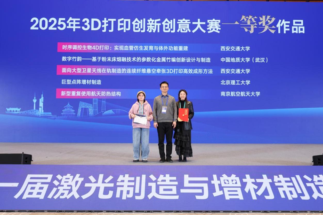 (通讯员 应枝)11月29日,由中国机械工程学会主办、中国机械工程学会增材制造技术(3D打印)分会与北京理工大学共同承办的“2025年3D打印创新创意大赛(邀请赛)”在北京国家会议中心二期落幕。此次大赛与第一届激光制造与增材制造创新发展大会同期举行,公司beats365官方网站项目《数字竹韵:基于粉末床熔融技术的参数化金属竹编创新设计与制造》在比赛中脱颖而出,荣获大赛一等奖,国家增材制造创新中心西安交通大学卢秉恒院士与北京航空航天大学王华明院士为获奖师生颁奖。参赛同学为beats365官方网站激光先进制造团队的应枝、潘瑞琪、邱天雨、高娜、潘亦喆;指导教师为殷杰、汤凡渺、李正。