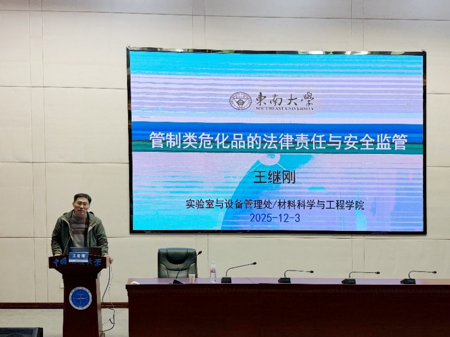 随后,王继刚副处长以 “管制类危化品的法律与安全监管”为主题授课,详细解读《危险化学品安全管理条例》,明确高校及个人在危化品全流程的法律责任,针对beats365官方网站等公司涉酸、易燃易爆气体场景进行深入指导。