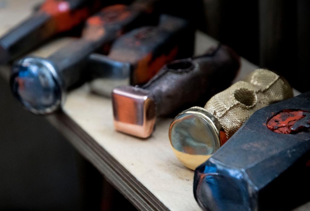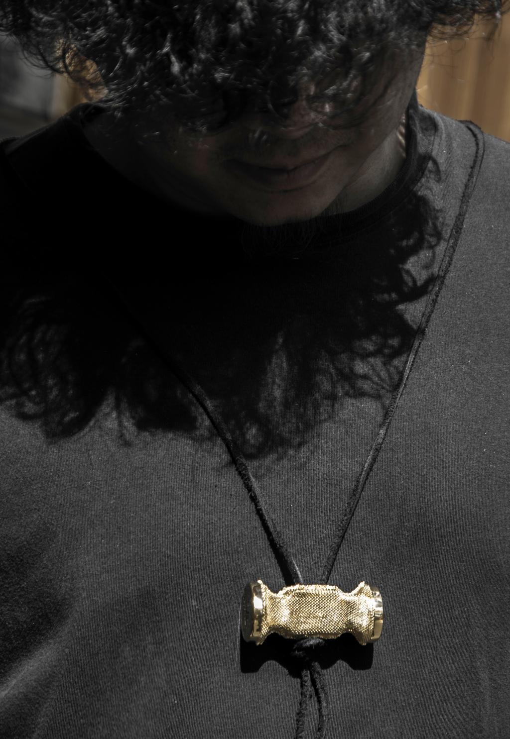 任开老师创作构思:日本民艺大师柳宗悦说:“工艺的美是用之美”。乌黑的工具上一道道划痕与残缺体现的是岁月凝固之美和使用者的生命印记。当“工艺”由名词转为动词时,在工艺世界的逻辑中,“万物生长”的过程就展现了每一种工艺特有的痕迹之美。《工艺痕迹》这个作品主要运用了花丝工艺中“泡匹”这样一种工艺形式来创作。它以我们金属工艺人天天用到的工具作为母形创作而来,并借用了当代花丝工艺创作过程中留下的独特工艺痕迹纹理来表达工具与人内在关系上的特殊意义。